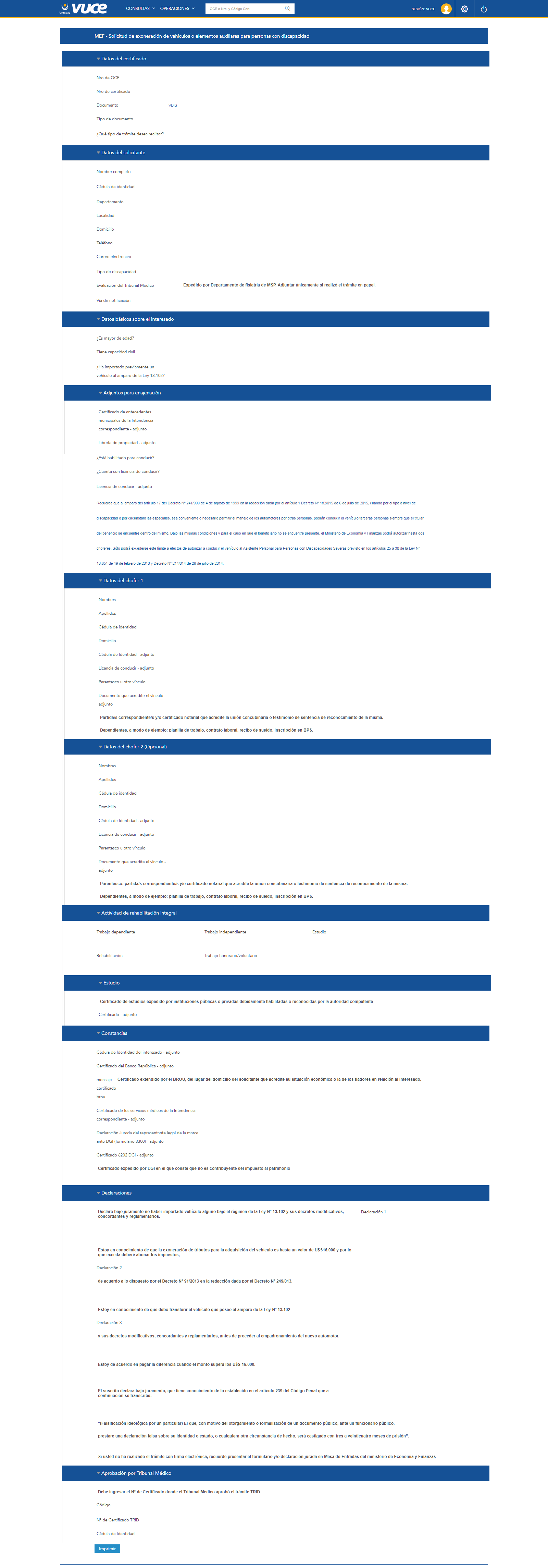 Solicitud de Exoneración de Impuestos para la Importación de Vehículos de Lisiados (MEF)