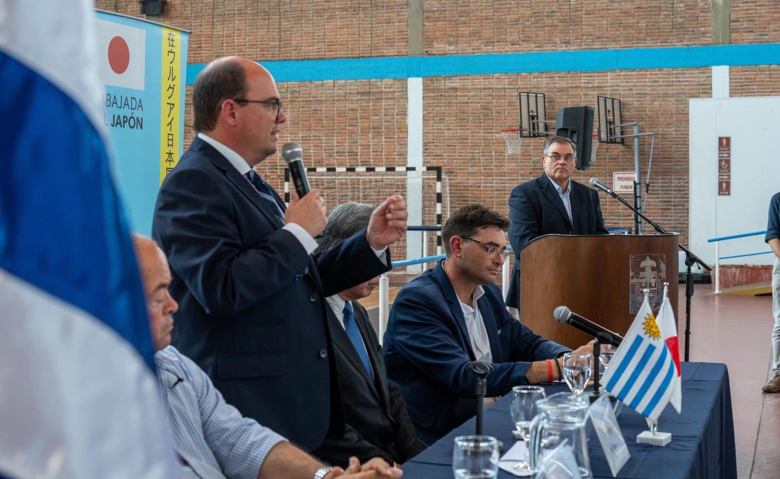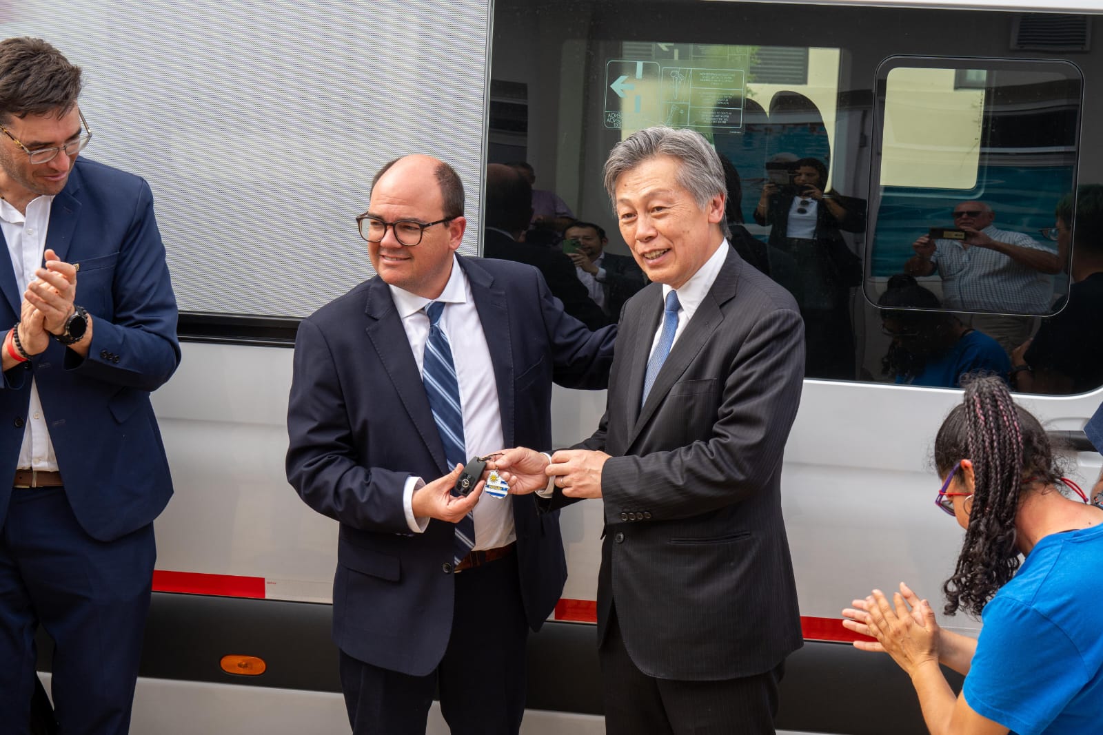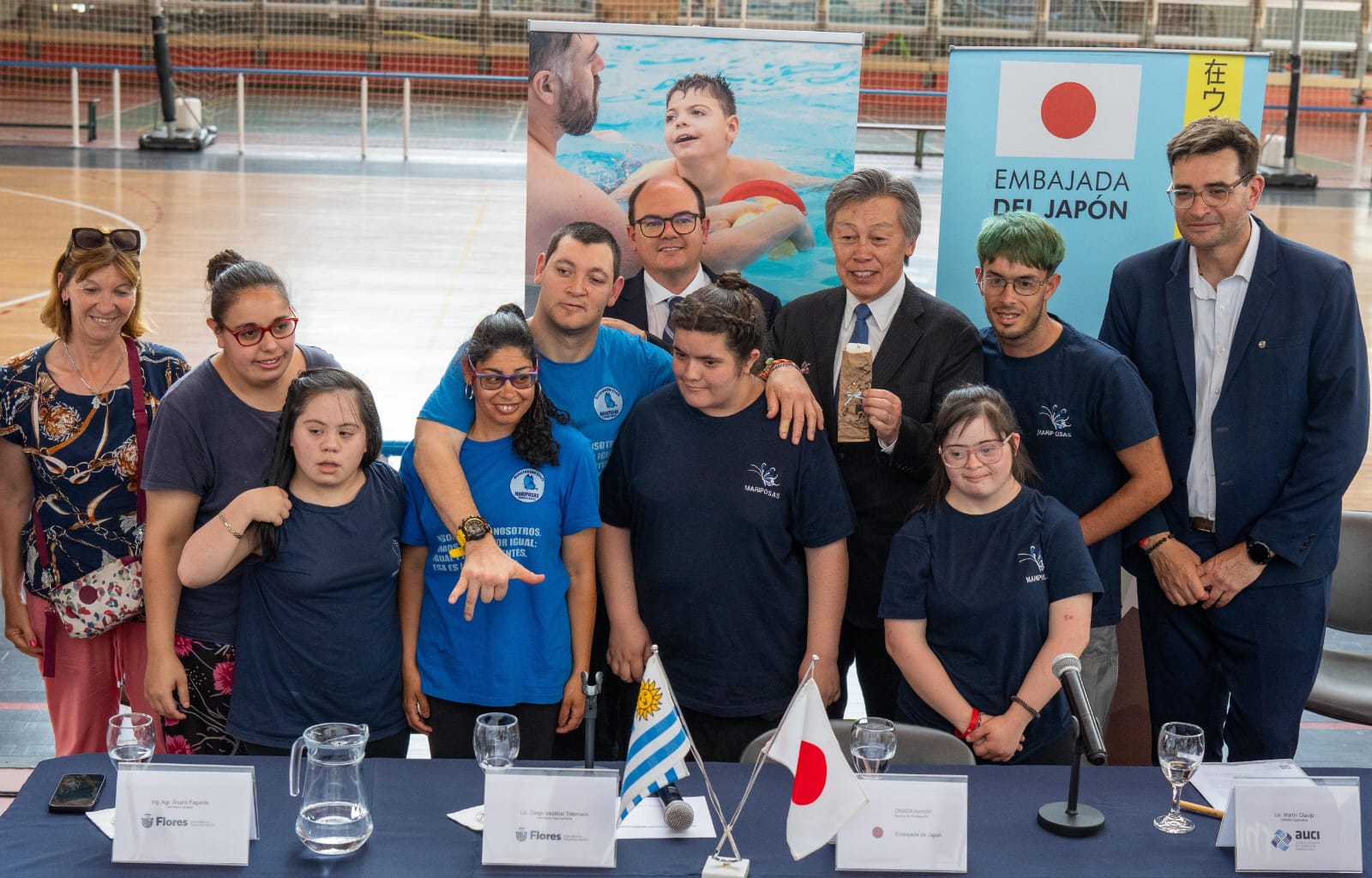 Participaron del acto el embajador de Japón en Uruguay, Kenichi Okada; el intendente de Flores, Diego Irazábal; el secretario general de la intendencia, Álvaro Fagalde; el exintendente de Flores, Fernando Echeverría; y el director ejecutivo de la Agencia Uruguaya de Cooperación Internacional (AUCI), Martín Clavijo, junto a la coordinadora de Cooperación Bilateral, Cynthia Padrón.