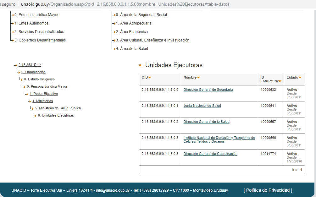 Todos los organigramas de las instituciones del Estado deben figurar en Unaoid. Por ello, es importante que uno de los primeros pasos cuando comienza a implantarse un sitio gub.uy en un organismo, sea chequear junto al equipo de gub.uy que el organigrama publicado en Unaoid es el correcto.