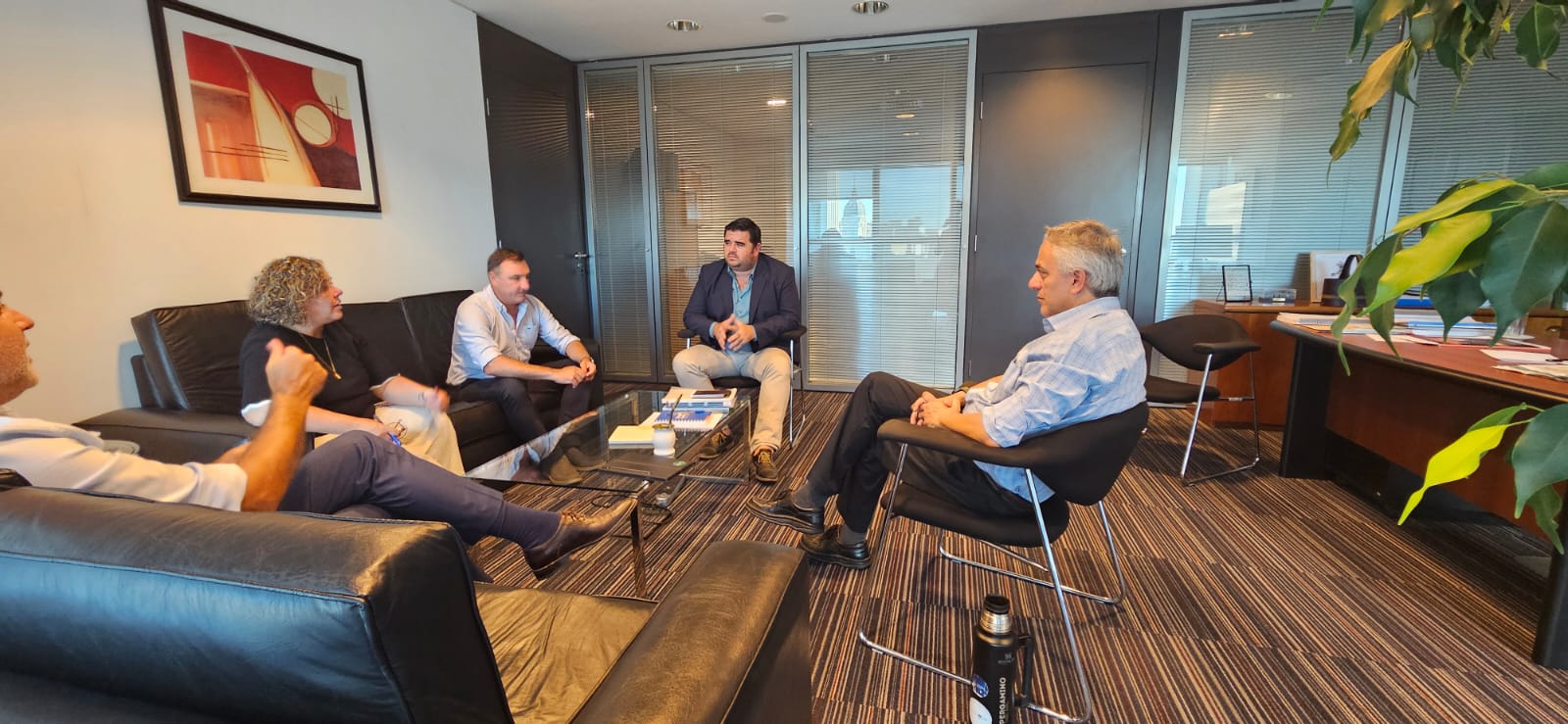 El presidente del Congreso de Intendentes, Nicolás Olivera, junto a los vicepresidentes Francisco Legnani y Carlos Albisu y la secretaria ejecutiva, Macarena Rubio, se reunieron con el director de la Oficina de Planeamiento y Presupuesto (OPP), Rodrigo Arim, para avanzar en una nueva edición del