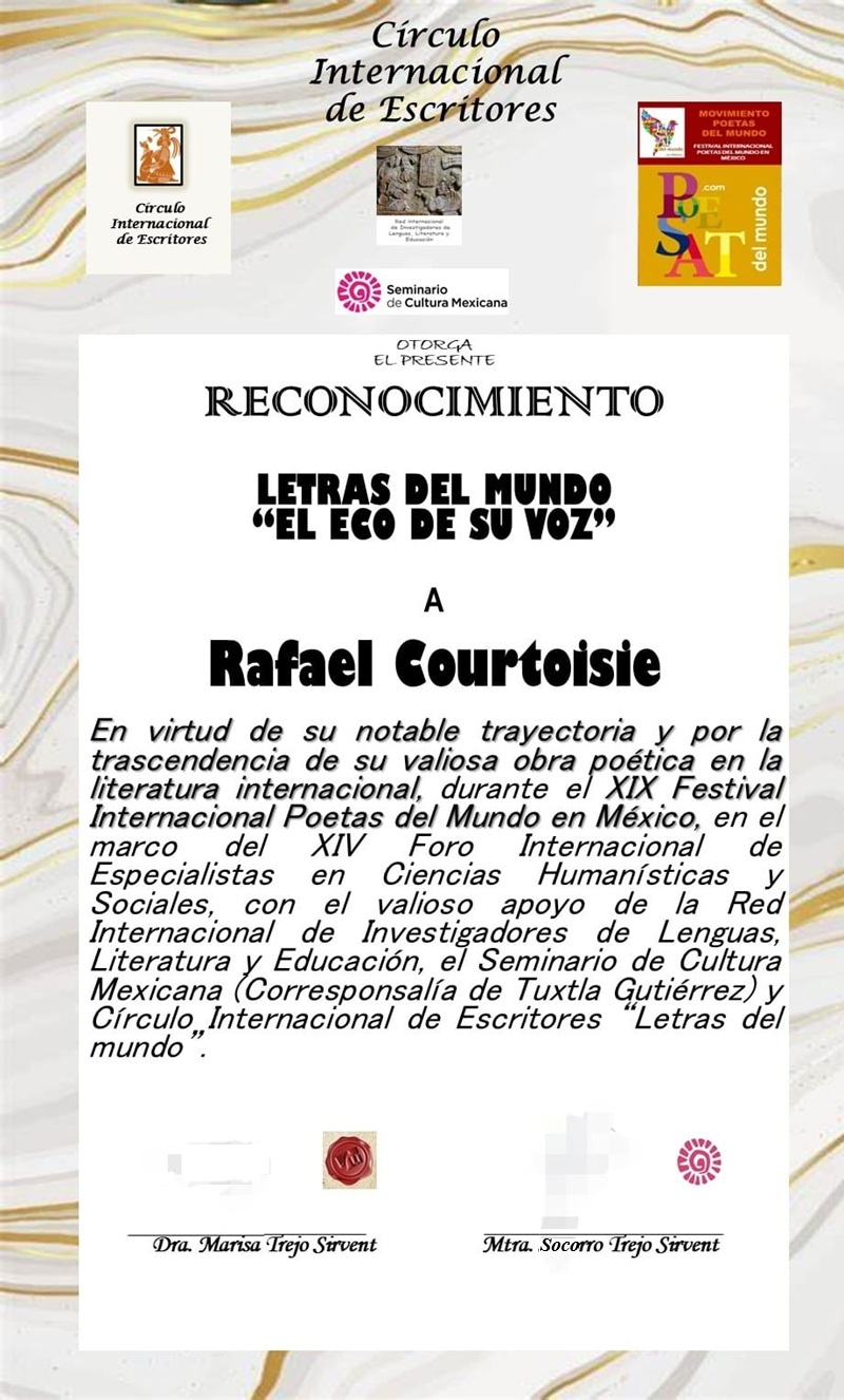 Noticias Distinción en México a Rafael Courtoisie24/02/2026 Compartir Facebook X Copiar enlace WhatsApp LinkedIn Por su notable trayectoria Reconocimiento a Rafael Courtoisie