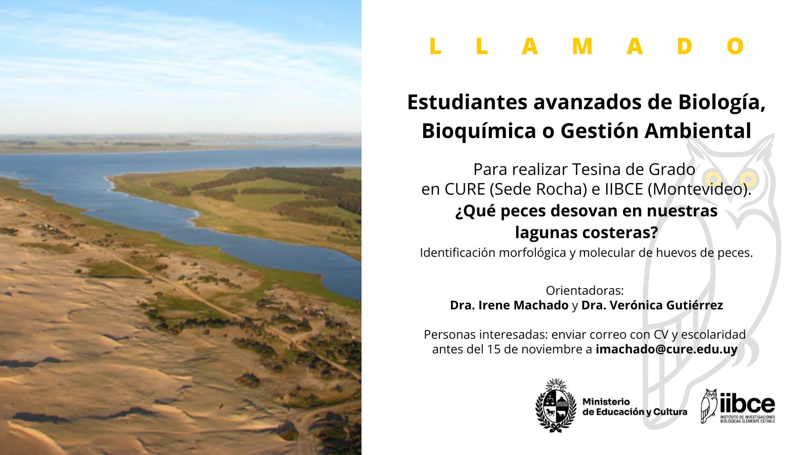 Personas interesadas: enviar correo con CV y escolaridad antes del 15 de noviembre a imachado@cure.edu.uy