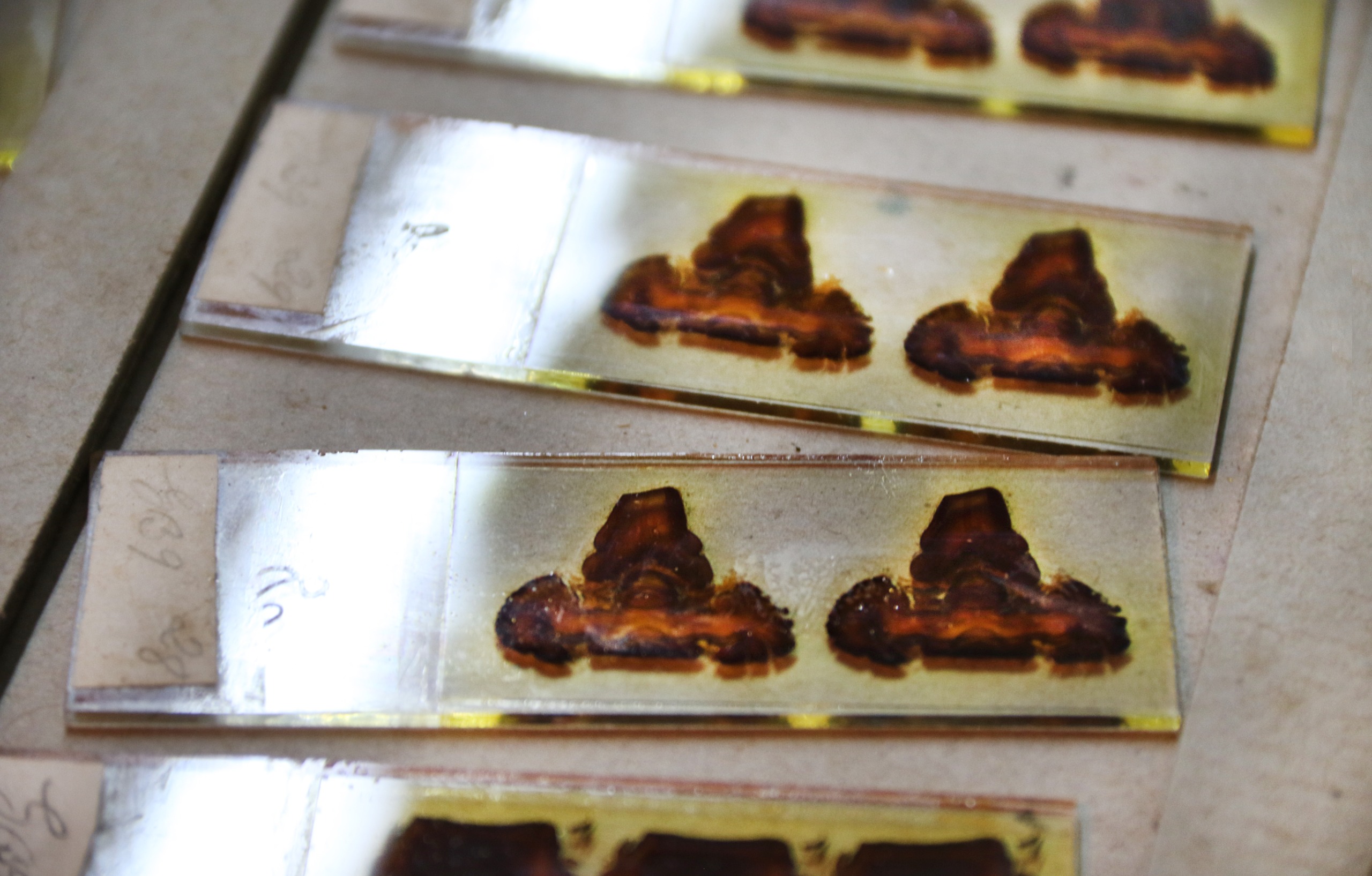 Detalle de preparados de Clemente Estable en el microscopio Descargar imagen : Detalle de preparados de Clemente Estable en el microscopio