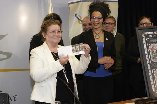 Posteriomenete, la presidenta de El Correo, Solange Moreira, presentó la serie de seis sellos en base a los vitrales del Museo Pedagógico sobre el día del patrimonio y se procedió al ritual de matasellar con las autoridades presentes.