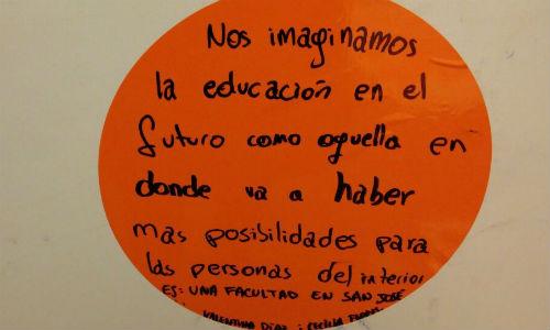 La actividad es una experiencia de creación comunitaria, una acción para la construcción colectiva de una idea y un espacio, que busca visualizar la búsqueda de respuestas para la educación del futuro. La creación final realizada por todos los participantes tiene un valor estético en sí mismo y afianza la idea “Juntos construimos la educación del futuro”.