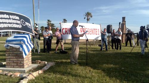 El acto comenzó con la intervención del Dr. Ariel Pisano, quien estuvo detenido en el Batallón de Ingenieros de Combate Nº2 de Florida, Terry Madero, viuda de Alfredo Pino Garín y del presidente de la Comisión Especial de Reparación, Nicolás Pons.