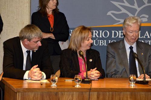 La firma del documento tuvo lugar en el Palacio Santos del Ministerio de Relaciones Exteriores y contó con la presencia de la ministra de Educación y Cultura, María Julia Muñoz, el canciller Rodolfo Nin Novoa, el embajador de Alemania en Uruguay, Heinz Peters, el director de la Oficina de Planeamiento y Presupuesto (OPP), Alvaro García, el presidente del Banco República, Julio César Porteiro y el presidente de la Cámara de Comercio Uruguayo Alemana, Paul Rizler.