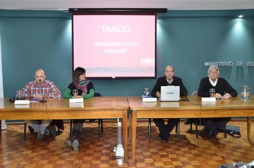El jueves 11 de junio el Grupo Tango del Ministerio de Educación y Cultura presentó las líneas de acción para la salvaguardia del tango y el libro “Patrimonio Vivo de Uruguay. Relevamiento de Tango” en la Sala Alba Roballo del Ministerio.