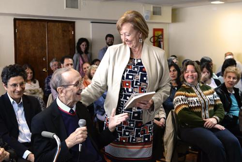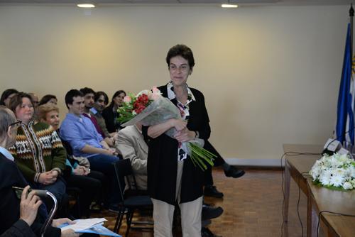 Posteriormente se entregó la distinción de Investigador Emérito a Máximo Drets con una placa recordatoria. Drets expuso su agradecimiento, leyendo una nota para la ocasión y obsequió un libro de su autoría a la ministra María Julia Muñoz