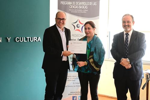 El Programa de Desarrollo de las Ciencias Básicas, PEDECIBA, realizó su ceremonia anual de entrega de premios “Dr. Caldeyro Barcia” a la trayectoria de investigadores jóvenes (menores de 45 años) que han demostrado independencia y trabajo desarrollado a nivel nacional en el marco del programa, en la sala Alba Roballo del noveno piso del MEC.
