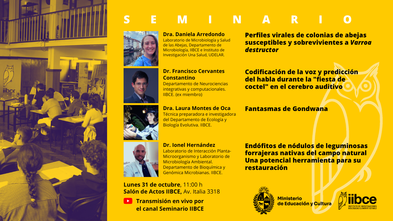 El Seminario además se transmite en vivo por el canal de YouTube Seminario IIBCE. En este canal también se pueden ver las grabaciones de los encuentros anteriores.
