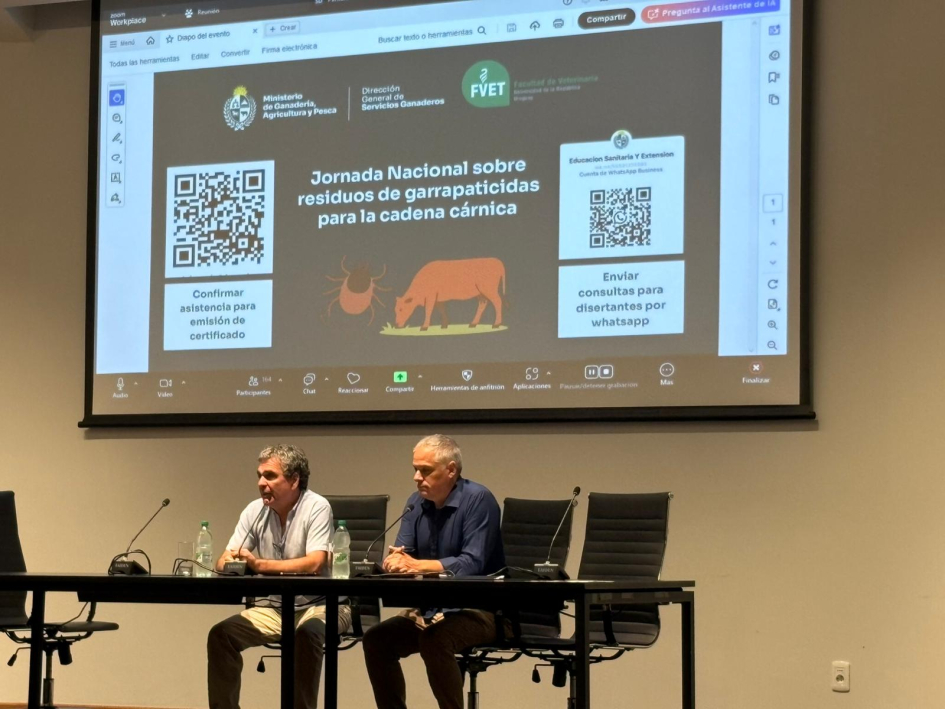 En la apertura del bloque macro, los coorganizadores de la actividad, Edgardo Vitale, asesor de los Servicios Ganaderos e integrante del Núcleo de Una Salud de la Facultad de Veterinaria, y Gonzalo Suárez, profesor titular de la Unidad Académica de Farmacología y Terapéutica, destacaron la amplia convocatoria lograda y el interés generado por la temática, incluso en una fecha compleja del calendario académico y productivo.