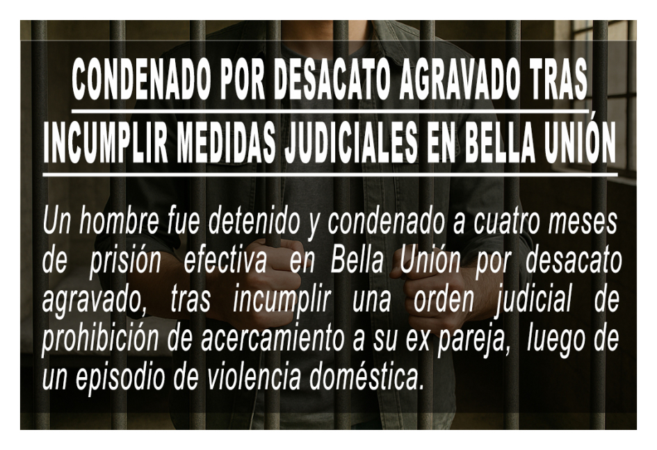 Condenado por desacato agravado tras incumplir medidas judiciales en Bella Unión