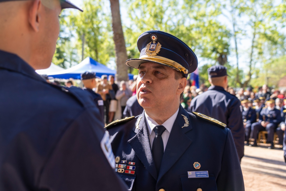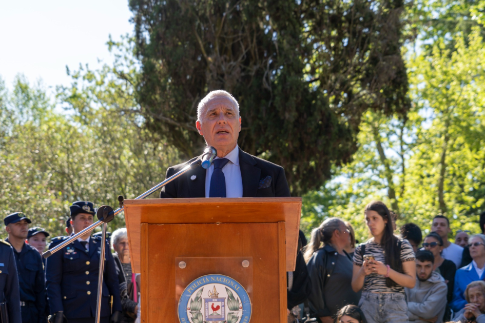 El Ministro del Interior, Dr. Carlos Negro, estuvo presente en el egreso de 61 Policías de la Escala Básica del departamento de Canelones, junto la Subsecretaría Cra. Gabriela Valverde, el Director de la Policía Nacional Crio General (R), José Azambuya, el Subdirector Ejecutivo de la Policía Nacional, Crio Gral Robert Tarocco, El Jefe de Policía de Canelones, Crio. General (R) Fabio Quevedo, el Subjefe de Policía Crio. Mayor Roberto Elizalde y Coordinador Ejecutivo de la jefatura de Canelones, Crio. Mayor Fabricio Da Rosa, el Director de la Escuela de Policia de Escala Básica de Canelones Crio Guillermo Mateos, y el Intendente de Canelones, Francisco Legnani entre otras autoridades