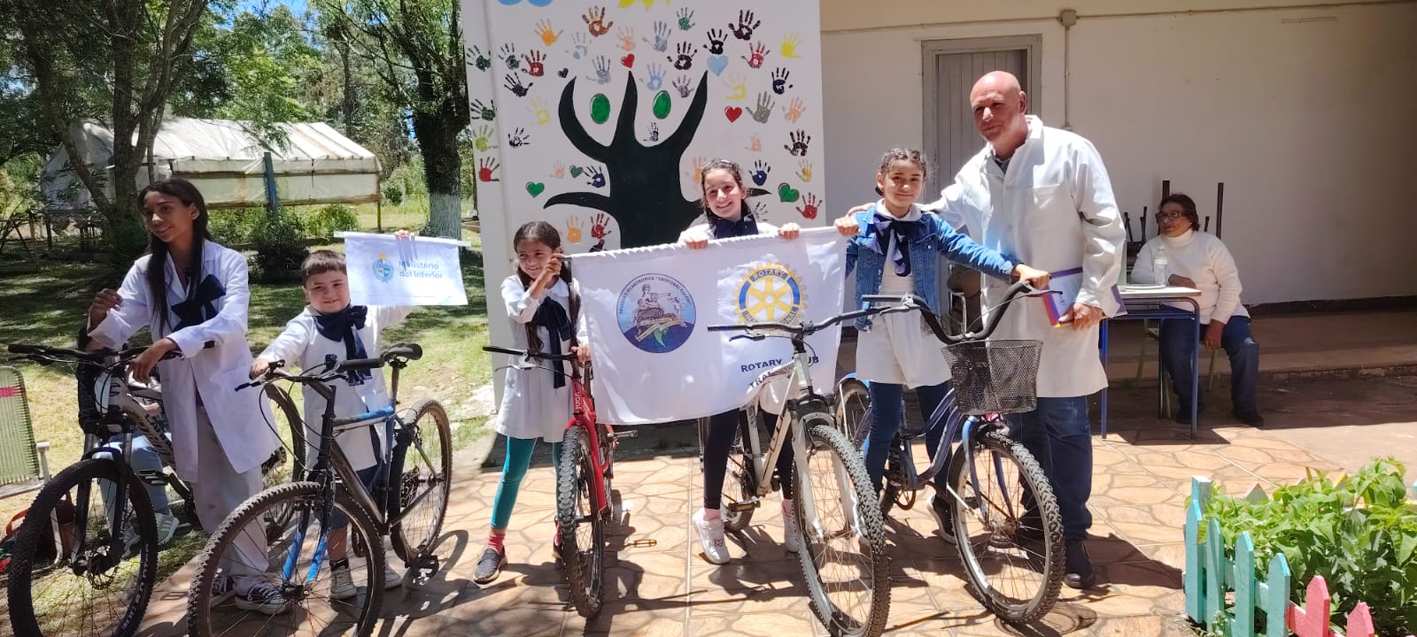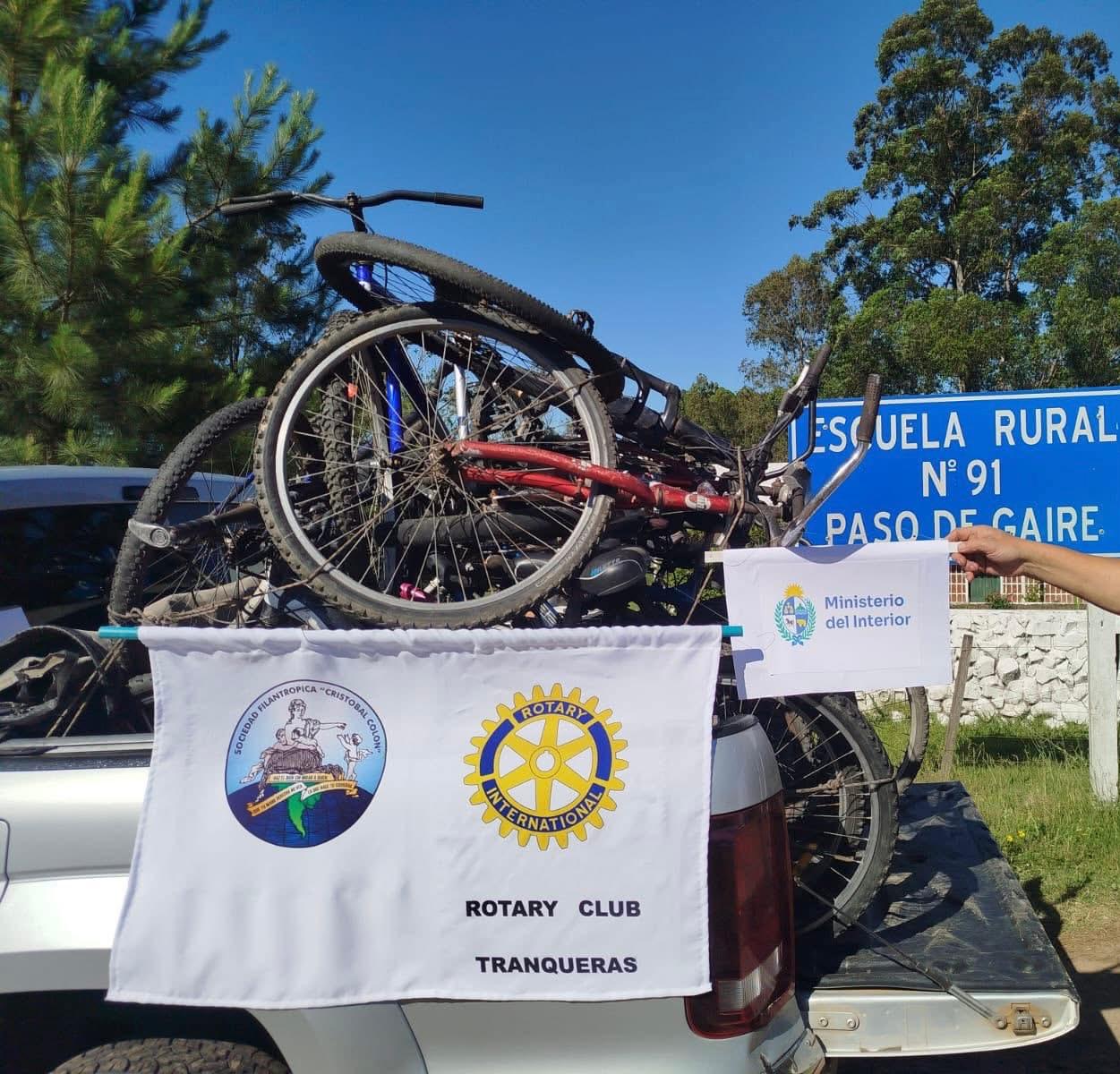 El Rotary Club de Tranqueras se hizo cargo del traslado de las bicicletas desde Montevideo, donde fueron puestas en optimas condiciones para ser entregadas en conjunto por la Sociedad Filantrópica Cristobal Colón a las escuelas rurales de “La Palma” Sauzal, Buena Unión, Manuel Díaz, Cerro Alegre, Paso de Gaire y Boquerón.