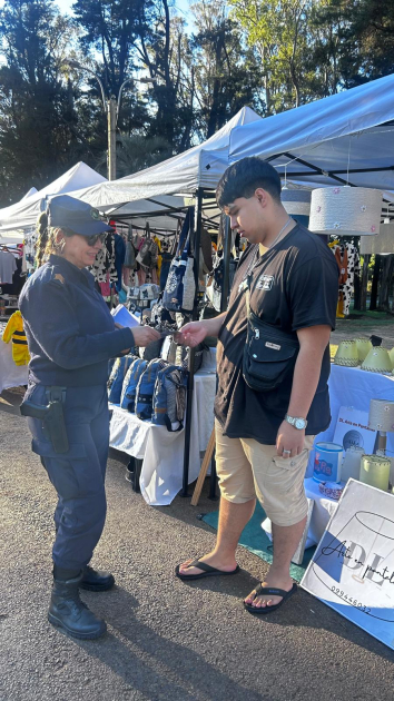 Directora de Violencia Dómestica y Género junto a Policías de PCOP Minas en Stand de Minas y Abril Descargar imagen : Directora de Violencia Dómestica y Género junto a Policías de PCOP Minas en Stand de Minas y Abril