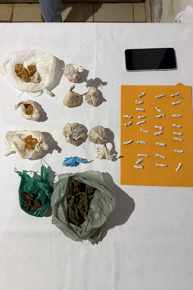 Al momento de su captura, el individuo portaba una mochila con 323 gramos de pasta base, cogollos de marihuana y un teléfono celular. En el lugar trabajó personal de Policía Científica, encargado del relevamiento de pruebas.