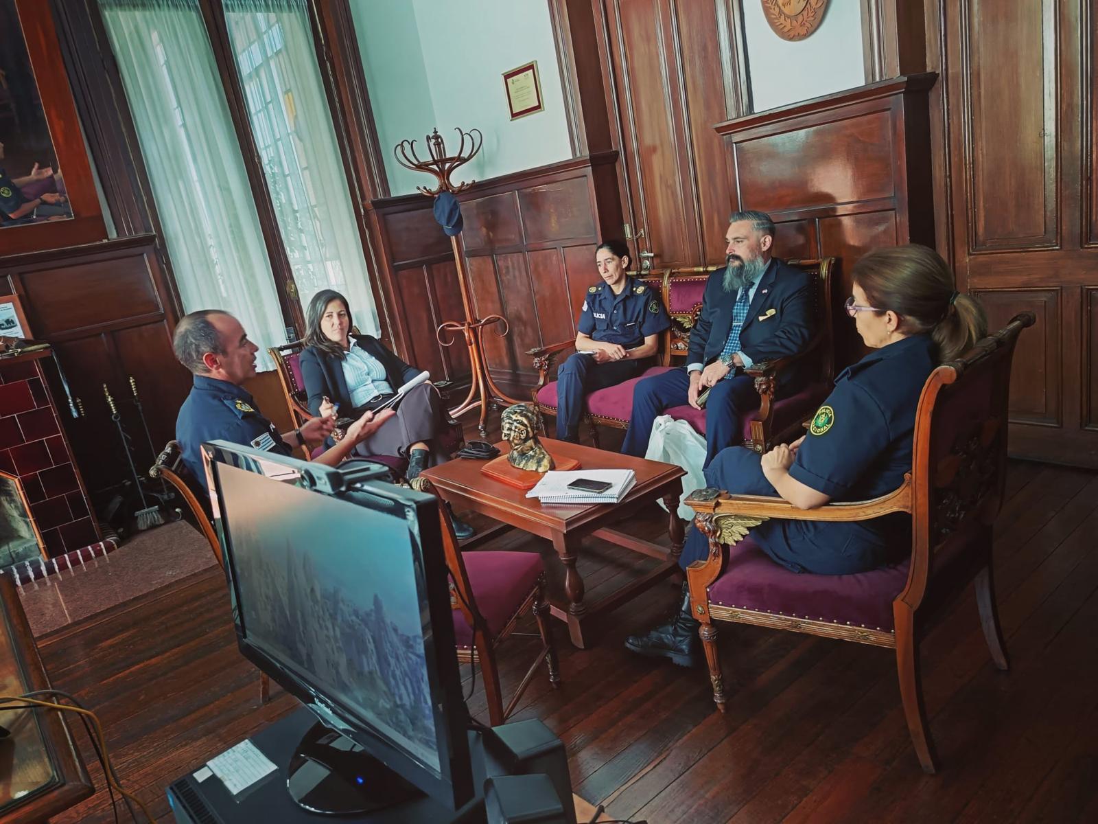 En el día de ayer, se celebró una reunión de trabajo en la Jefatura de Policía de Flores con Funcionarios Agregados de la Embajada de los Estados Unidos de América, con motivo de efectuar coordinaciones en materia de seguridad.