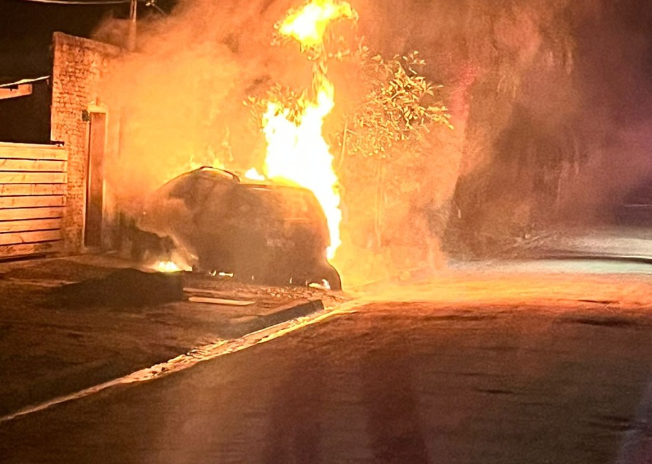 Al llegar al lugar, fue avistado un automóvil incendiando, estacionado fuera de una finca.