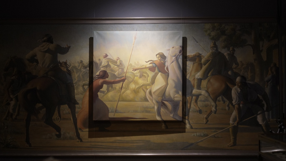 Las obras fueron intervenidas por María Noel Silvera quien se centró en el destacar el papel desempeñado por las mujeres durante la Revolución Oriental a partir de 1811. Las obras exhibidas son cuatro, el Grito de Asencio, La Batalla de las Piedras, Un Episodio del Éxodo y Libertadoras.