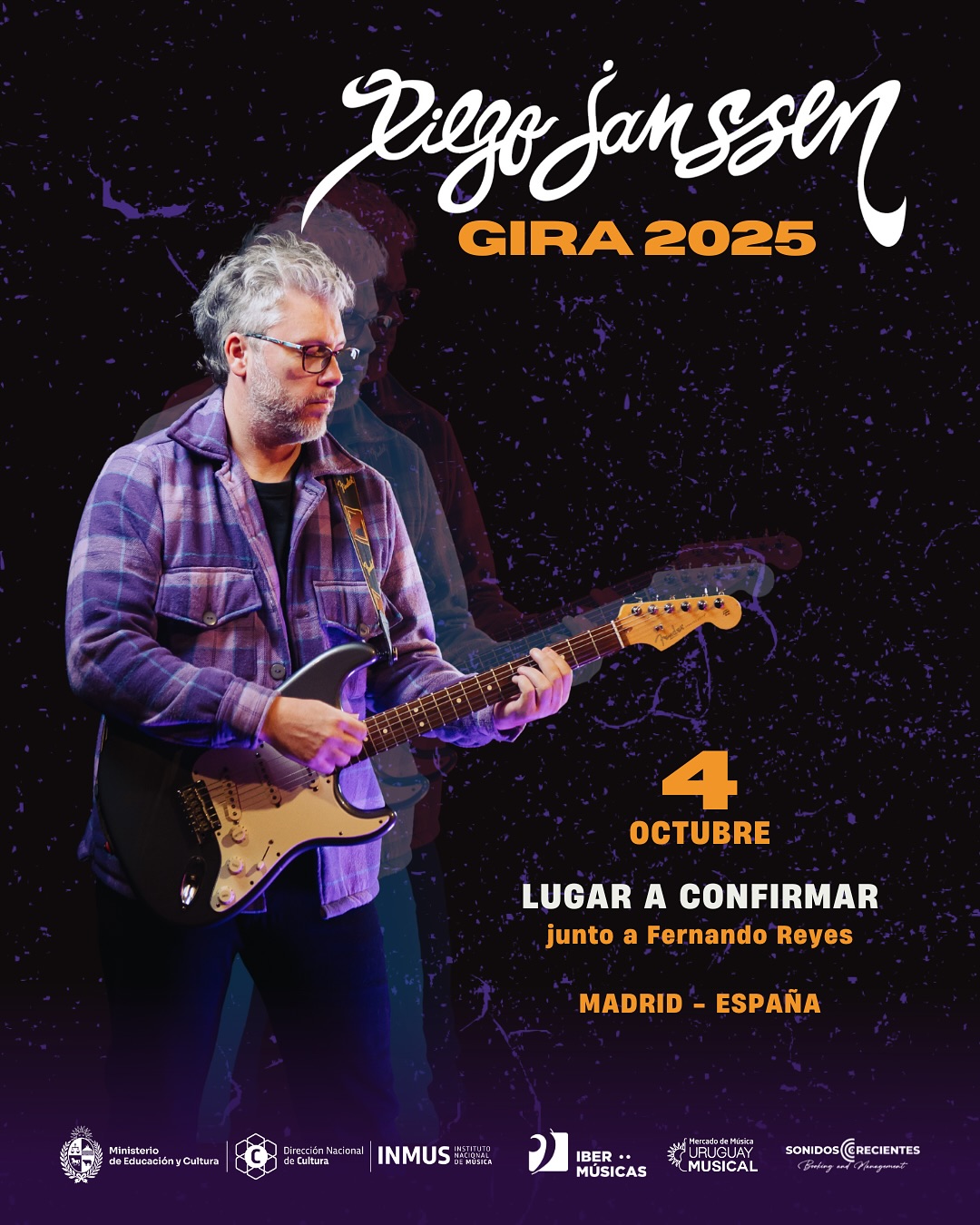 Se presenta en vivo con un live set dinámico de guitarras, samplers de tambores y visuales interactivos, ofreciendo shows innovadores e inolvidables de live looping en todo el mundo. Es doble ganador del Premio Nacional de Música en la categoría Jazz Fusión y en 2022 recibió el Premio Graffiti a mejor disco de Candombe Fusión. La propuesta de Diego Janssen fue premiada en la convocatoria 2024 del Programa Ibermúsicas en la línea de “Ayuda a la circulación de profesionales de la música”.