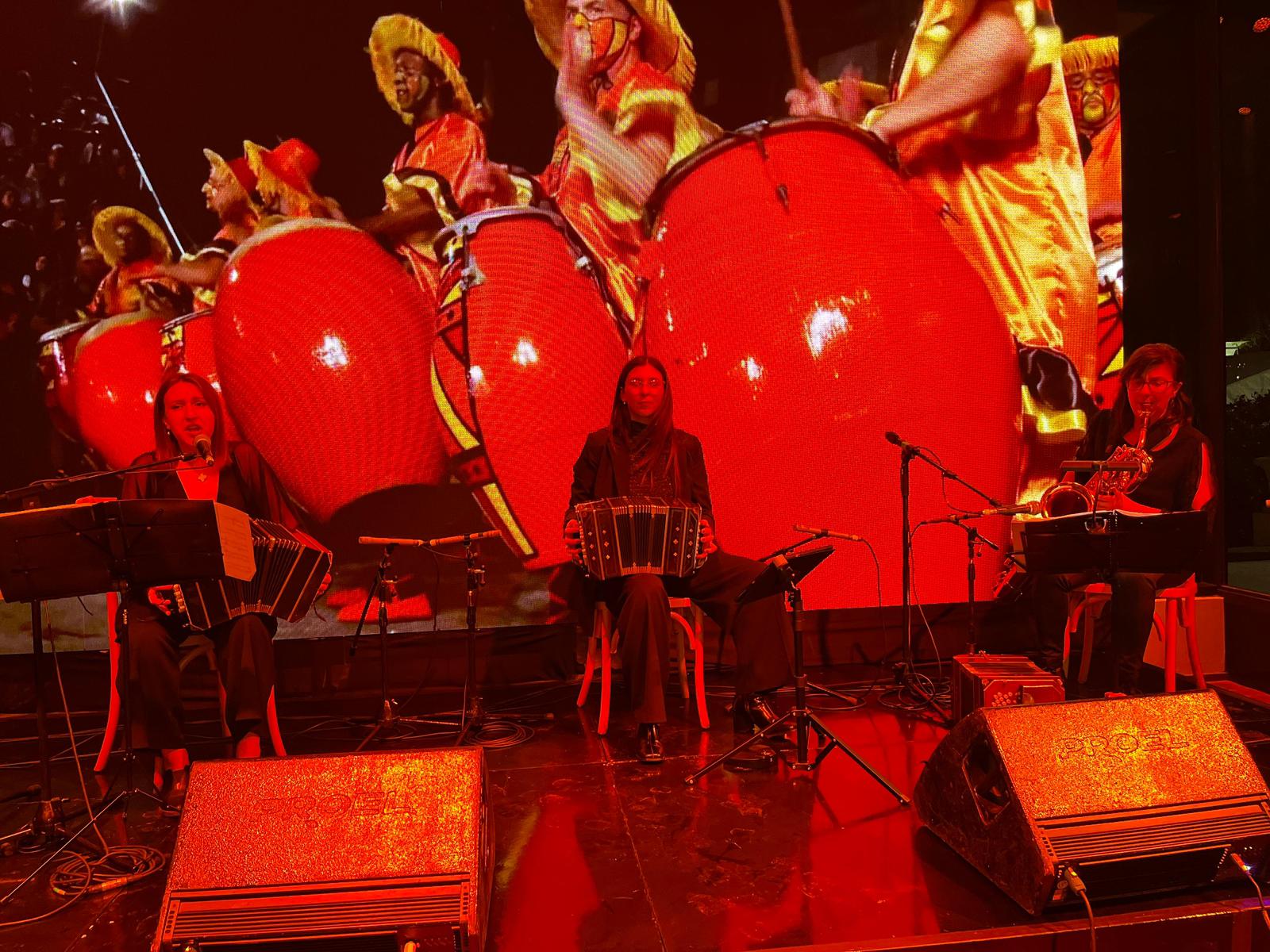 La recepción estuvo a cargo del trío musical Bandoneonas, que abrió la noche con un repertorio en vivo. Posteriormente, la conductora Ana Sofía Facello dio la bienvenida y presentó a las autoridades encabezadas por el ministro Pablo Menoni.