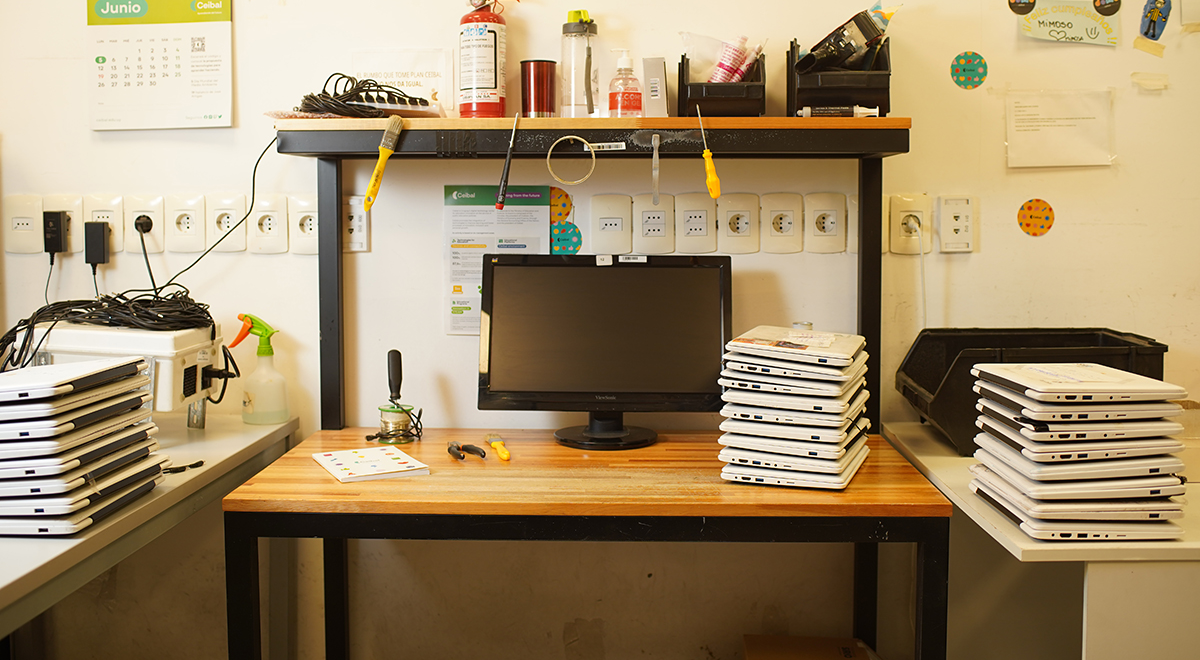 - Extensión de vida útil de dispositivos. Ceibal dispone de una red de centros de reparación en todo el país para el reacondicionamiento y desarmado de equipos.