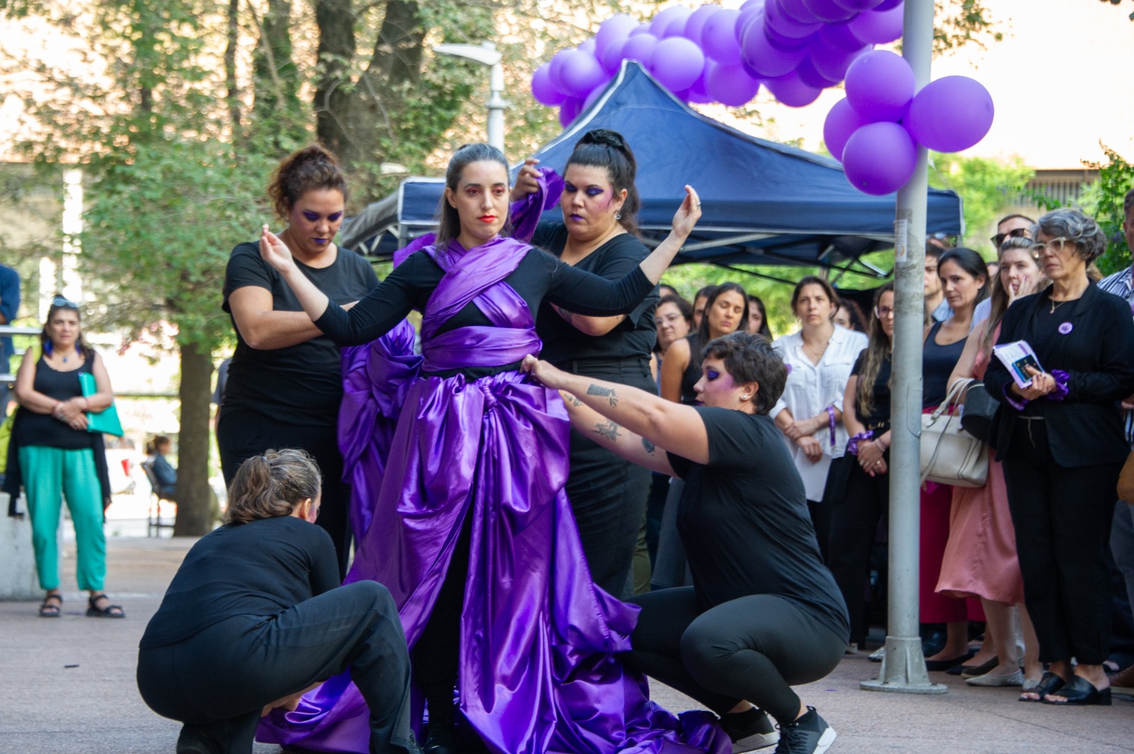 La intervención fue realizada el viernes 20 en la plaza Lorenzo Carnelli, ubicada en Colonia y Eduardo Acevedo, frente a la sede central del BPS, en Montevideo, e incluyó una acción denominada “Los nudos de la desigualdad”, impulsada por funcionarias del organismo.