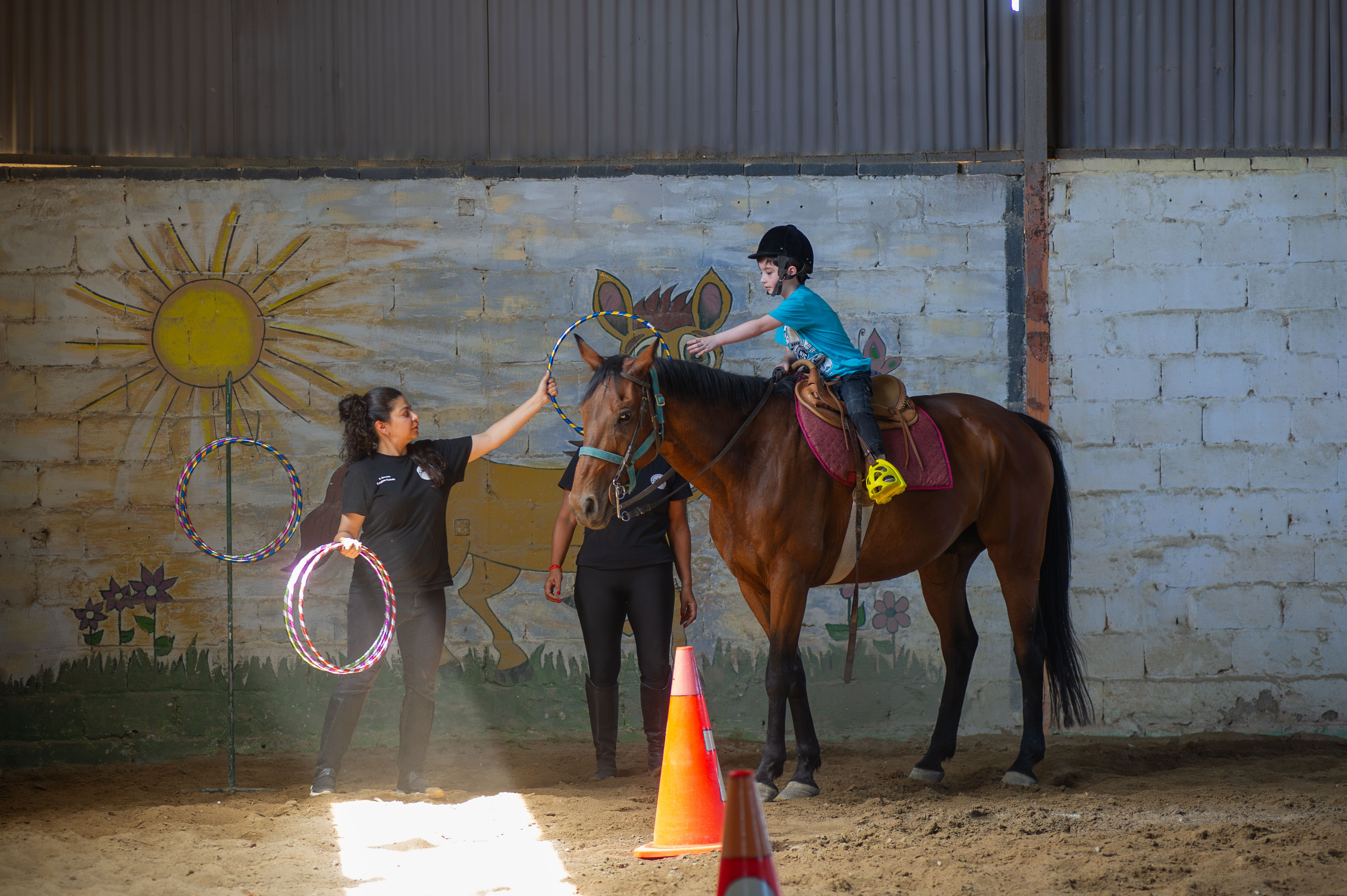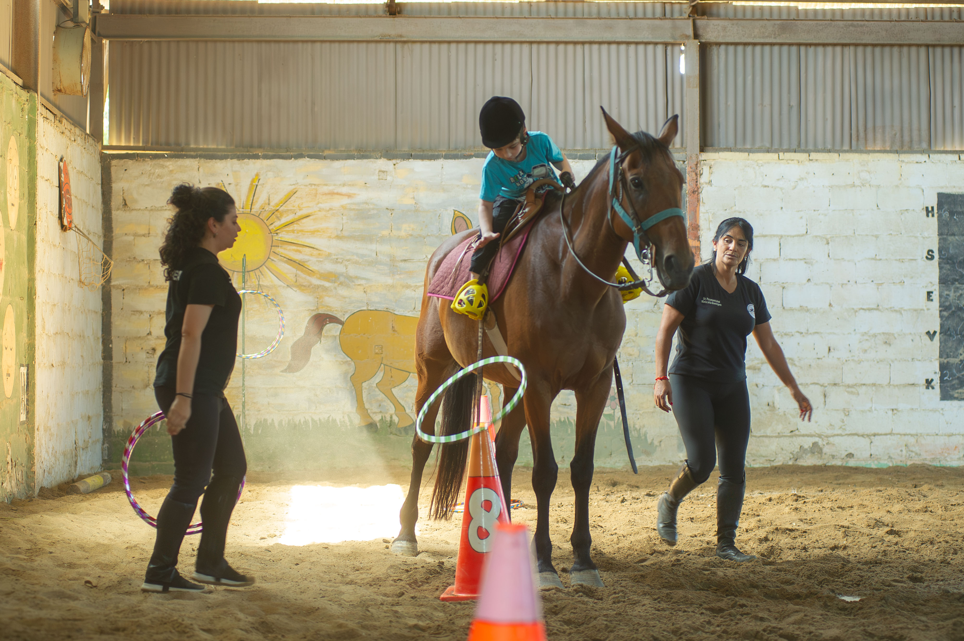 La responsable del Servicio de Equinoterapia de la Guardia Republicana, Verónica Castillo, detalló el funcionamiento del espacio, quiénes pueden ser beneficiarios y las ventajas para los usuarios que son niños y adolescentes con algún tipo de discapacidad.