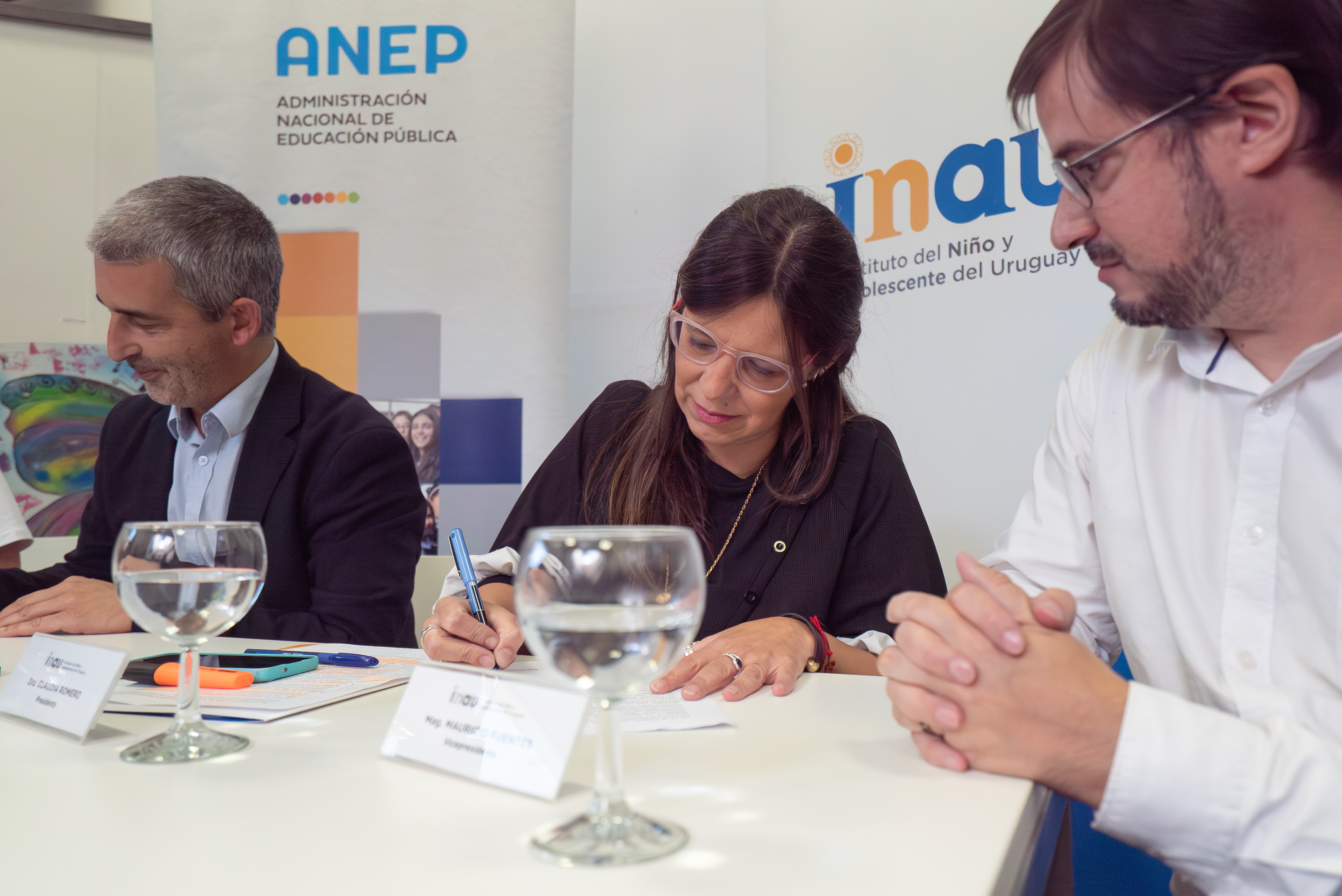 Presidenta del INAU, Claudia Romero y presidente de la ANEP, Pablo Caggiani