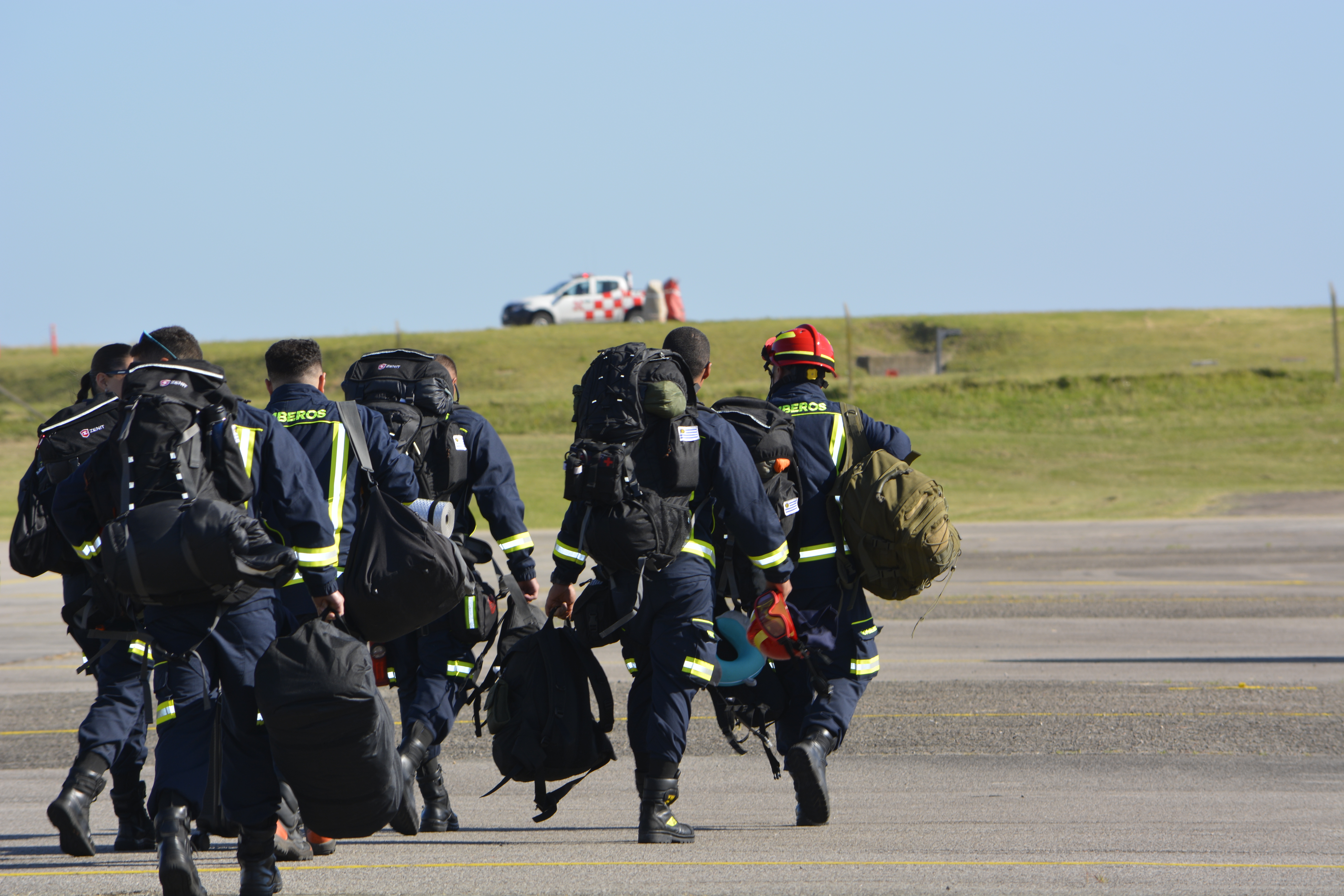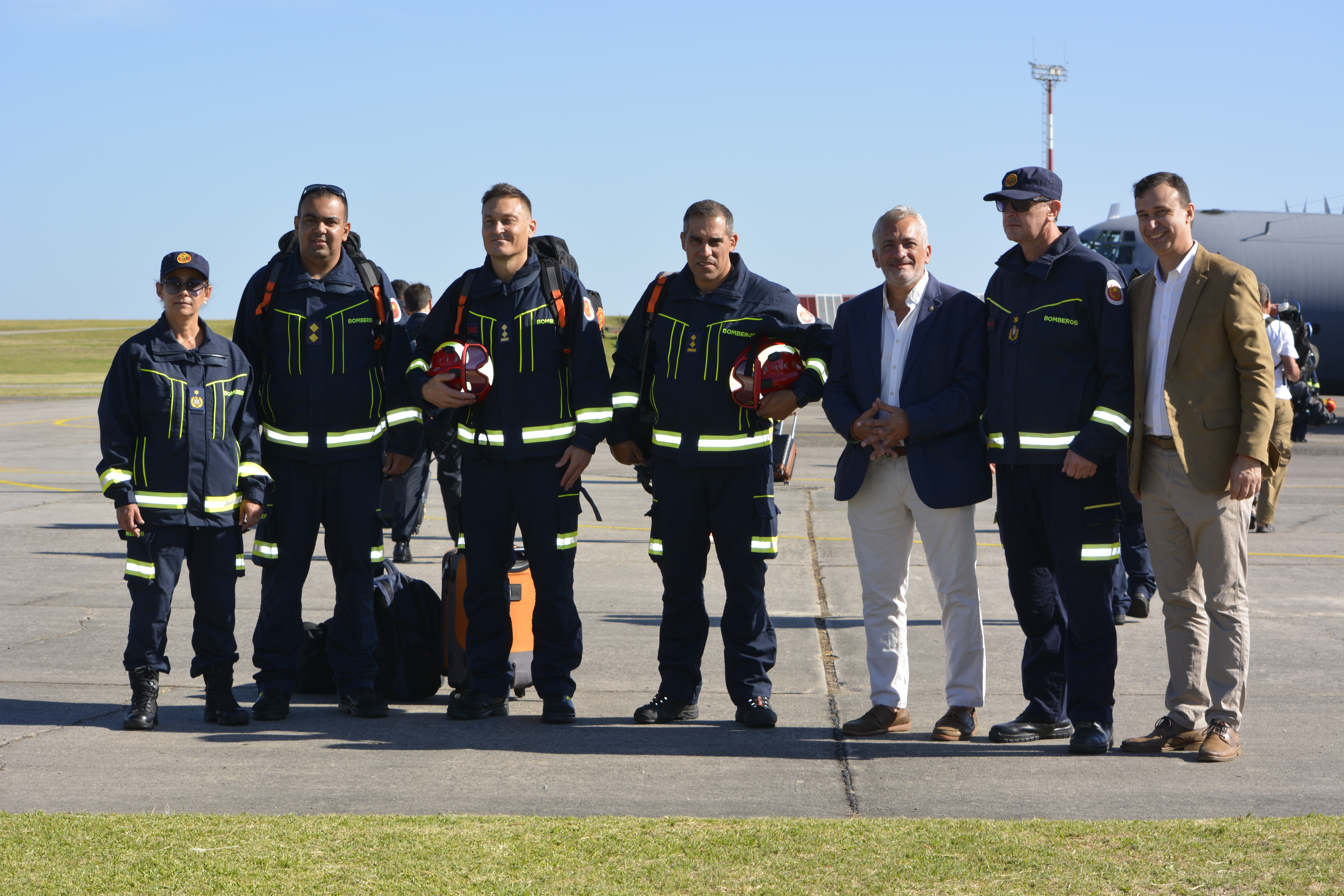Imágenes del grupo de 31 bomberos que partió a Chile para colaborar con el combate a los incendios forestales en la región de Ñuble.