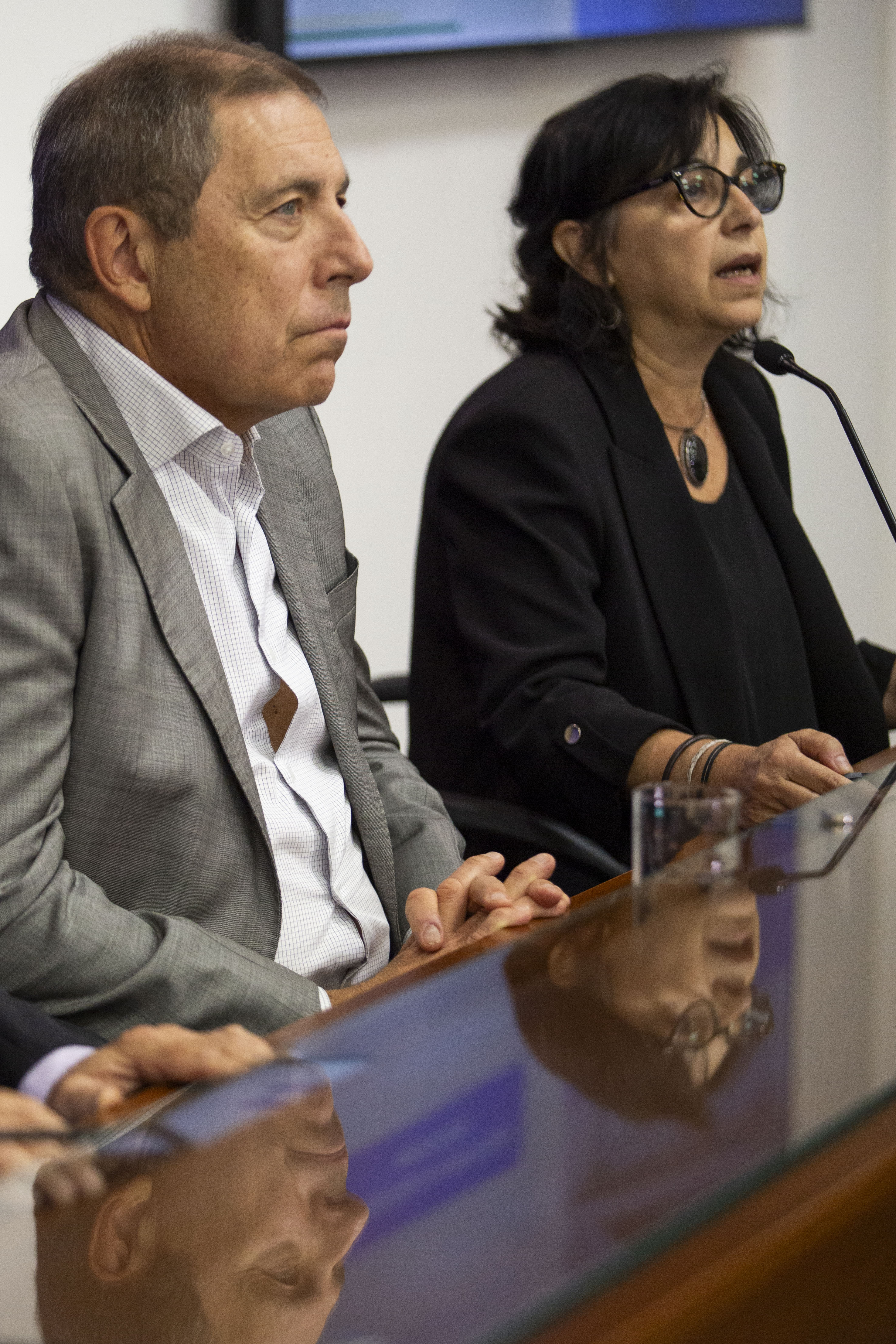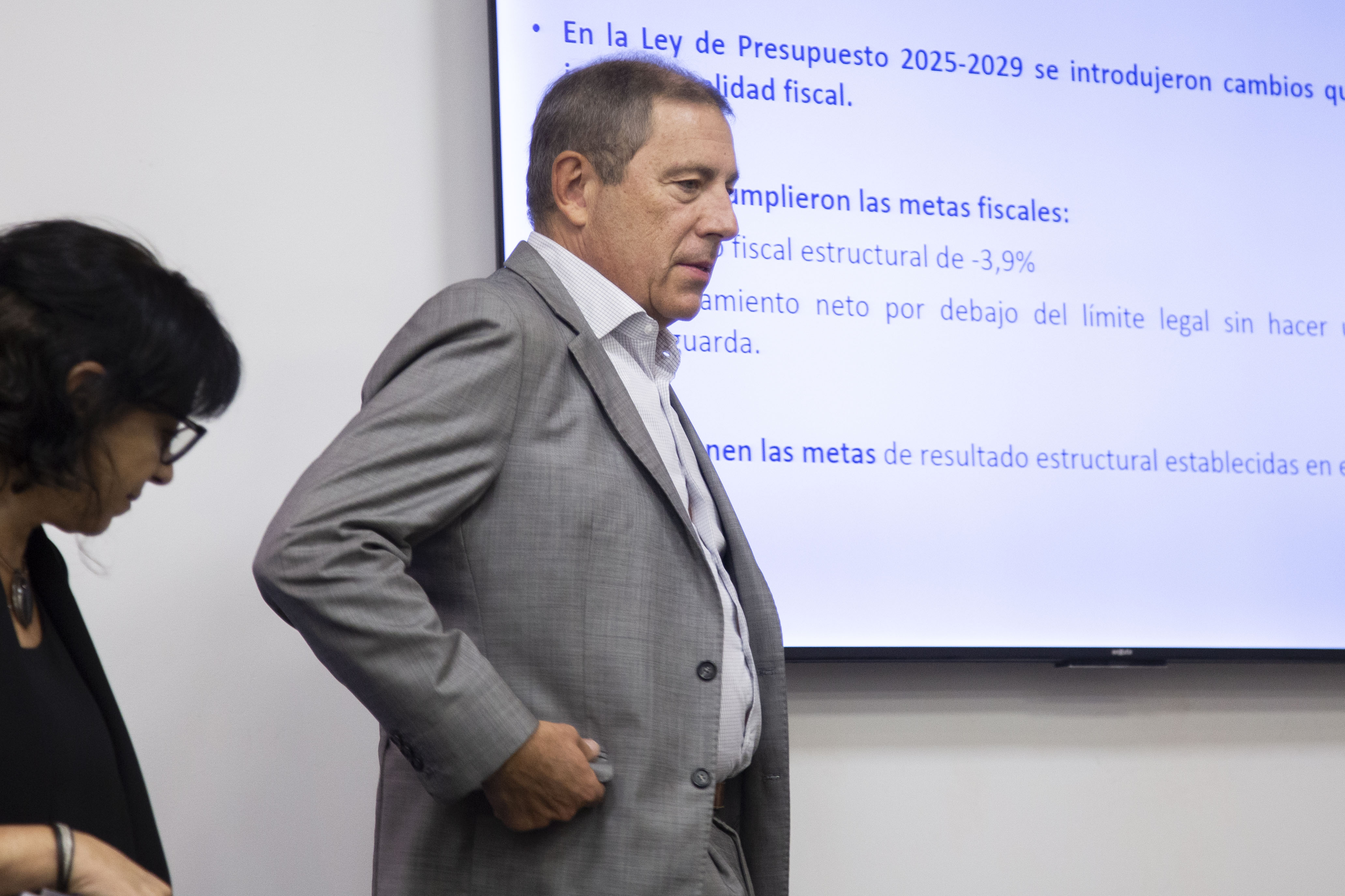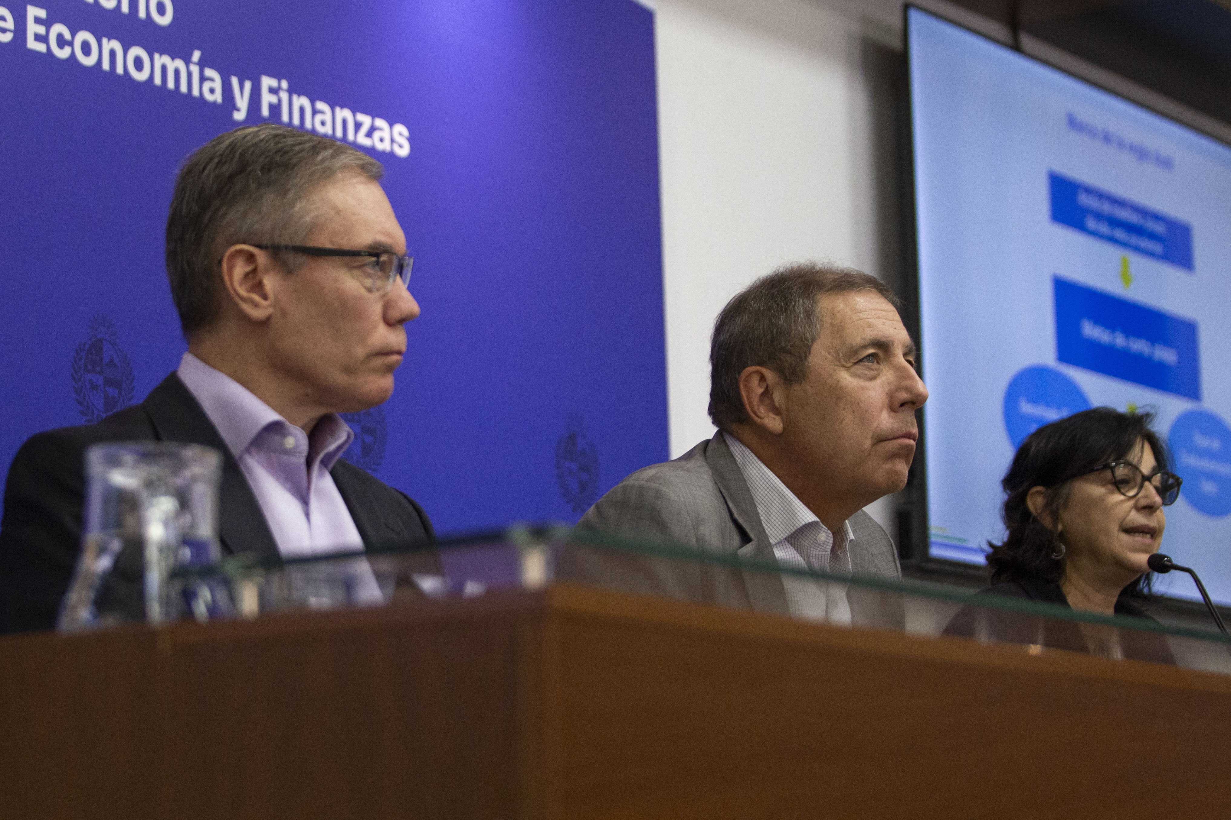 El ministro de Economía y Finanzas (MEF), Gabriel Oddone; el subsecretario de la cartera, Gabriel Vallcorba, y la la directora de Política Económica, Bibiana Lanzilotta, presentaron en conferencia de prensa los datos de metas fiscales del 2025 y proyecciones para este año.