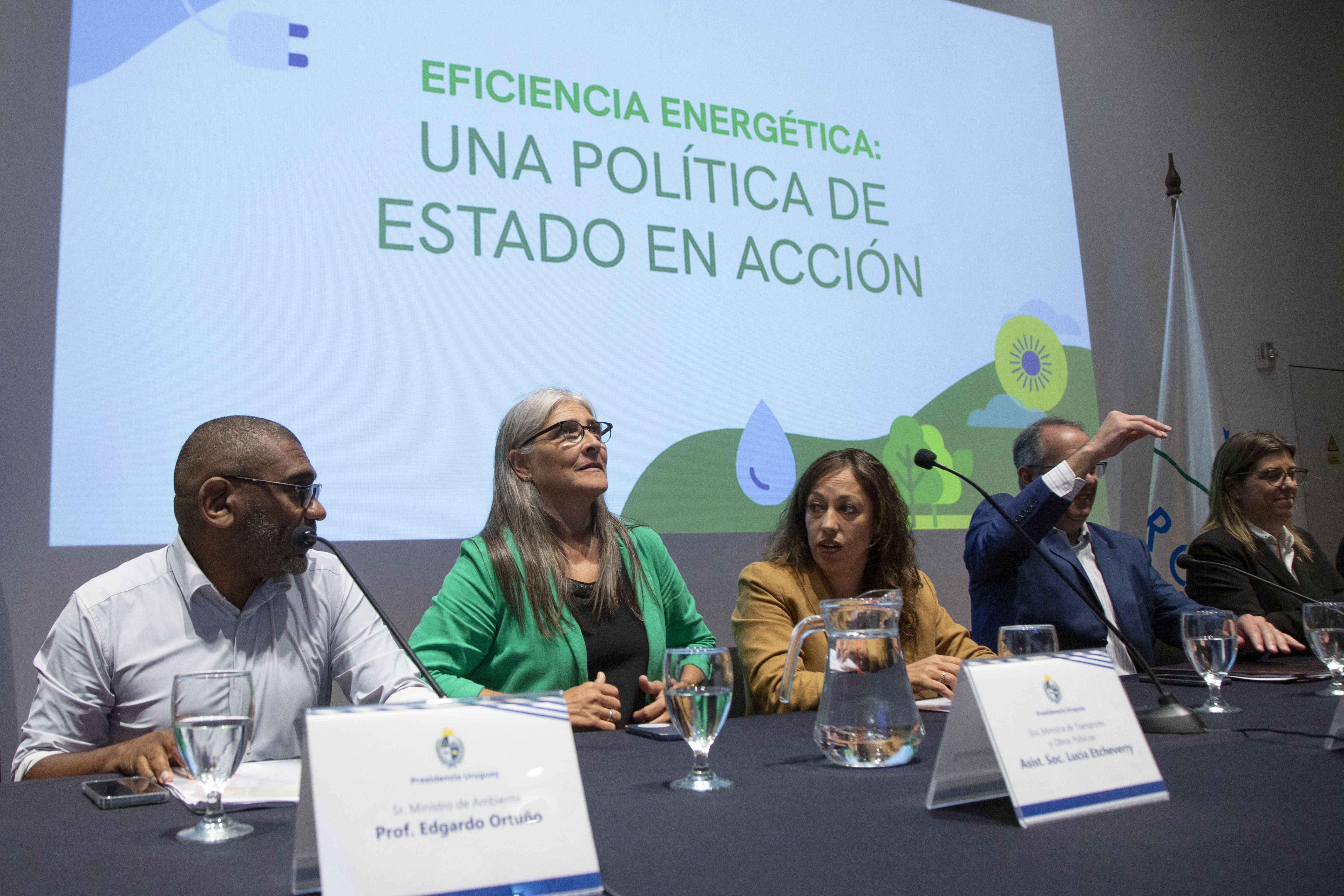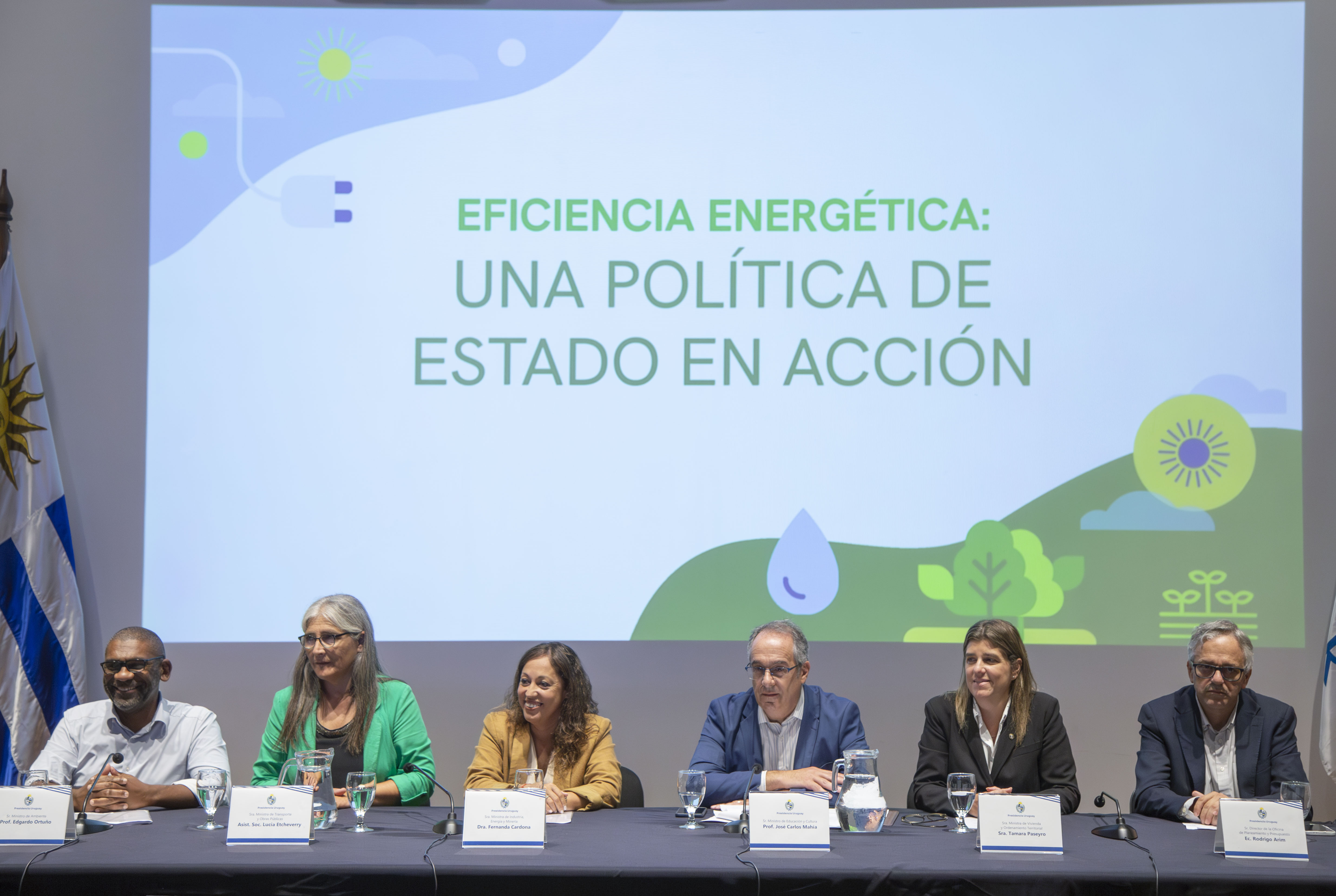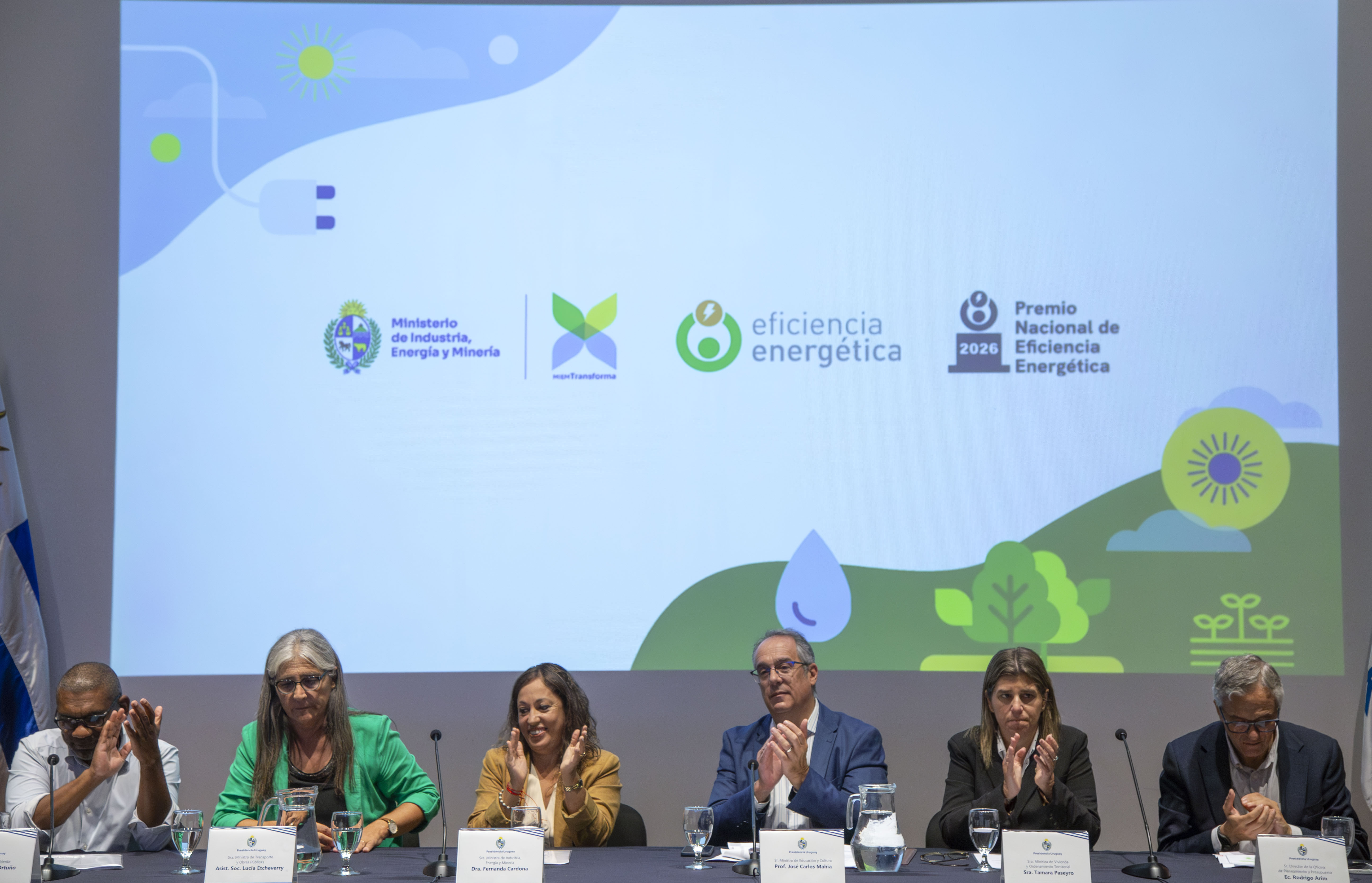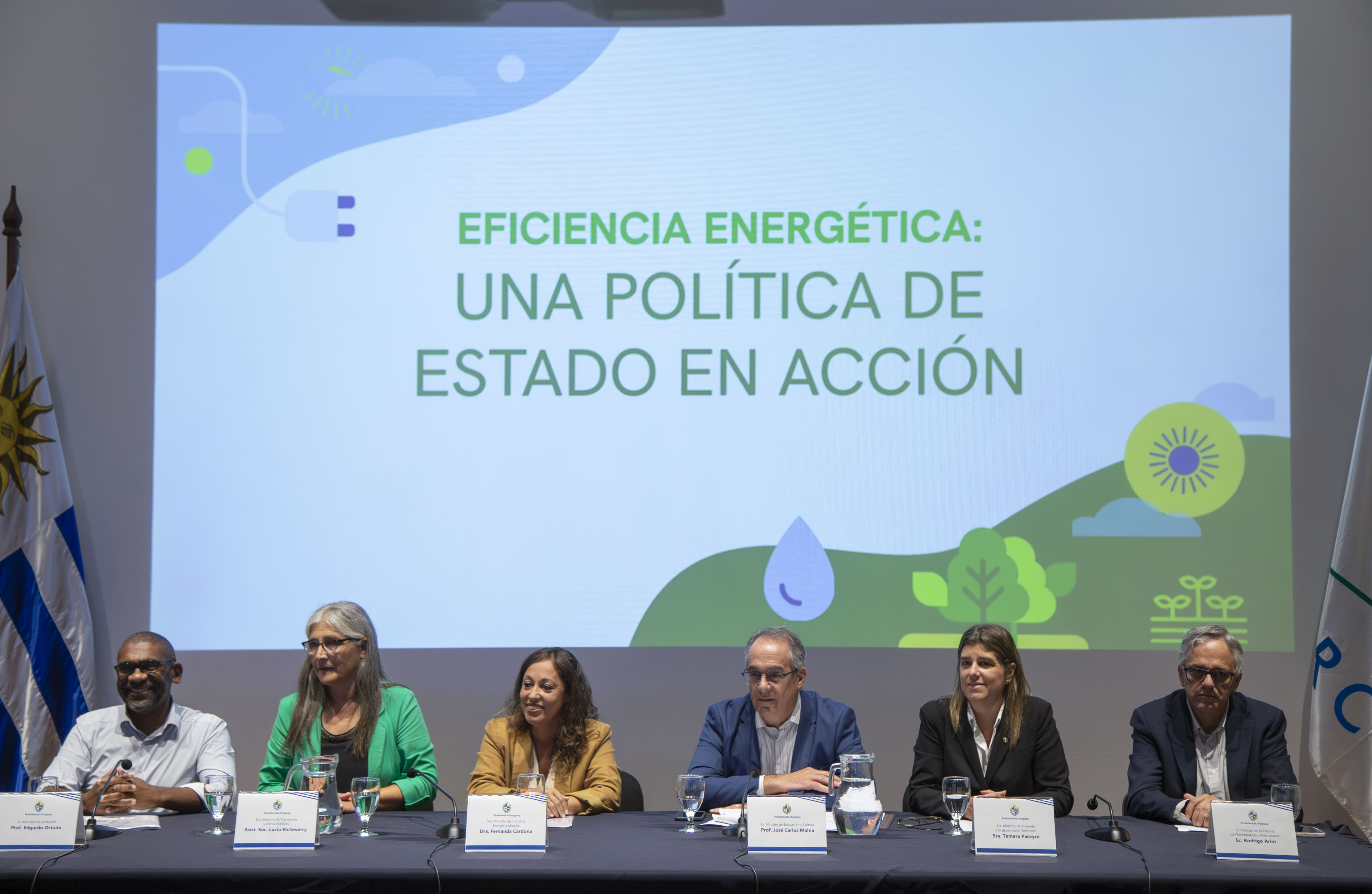 Ministros de Industria, Transporte, Vivienda, Ambiente, Educación, y director de la OPP